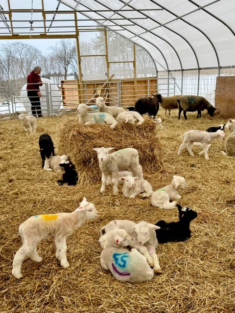 It’s been a busy February here at Leyden Glen Farm in western Massachusetts. We are knee deep in baby lambs and snow is coming again today. It’s been a very cold winter - way colder and snowier than what we have been used to for the past several years. It’s nice to have the ground covered with white as opposed to gray and brown. Our new greenhouse barn is working out beautifully for the sheep and lambs. I can feel winter trying to slip away. It is staying light past 5 and my hens — who have been on sabbatical for most of the winter — have started laying a bit again.